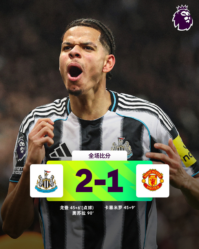 纽卡斯尔联2-1曼联