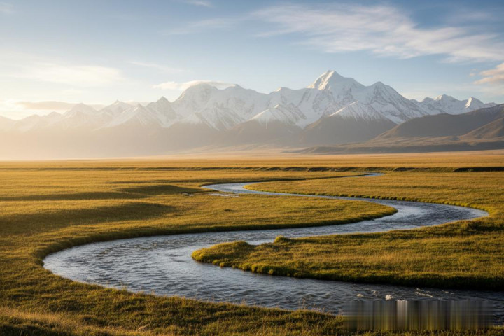 Prompt:一张以3:2画幅比例拍摄的风光照片。画面展现辽阔的高原草地,远处雪山与天空相接,前景蜿蜒的河流引导视线延伸至地平线。沐浴在清晨金色的阳光下,氛围柔和、清澈而明亮。构图开阔且灵活,既可横幅展现山川的壮丽,也可竖幅裁切突出天空与地平线的延伸感。使用徕卡M11相机搭配35mm f/1.4镜头拍摄。色彩调校强调高分辨率、细节丰富,并呈现自然的摄影风格。